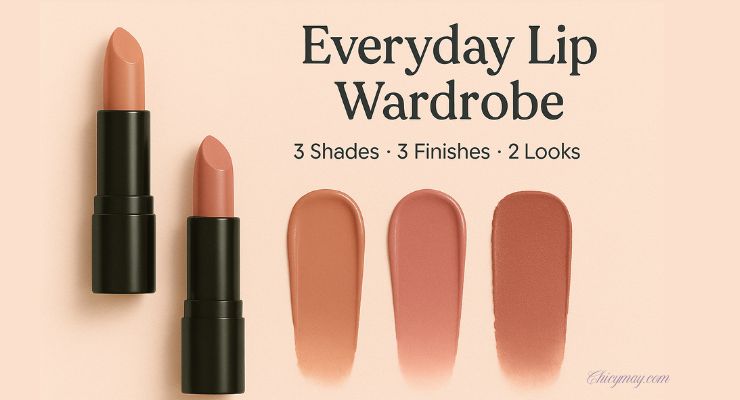 A perfect lip isn’t one bullet in your bag – it’s a system. An Everyday Lip Wardrobe gives you nine reliable combinations from just three shades and three finishes. No more “Which of these 17 lipsticks?” panic at 8:10 a.m. With a tight palette – MLBB, Rose, Berry – and finishes that stack (balm, satin, soft-matte), you can move from coffee to dinner without starting over.