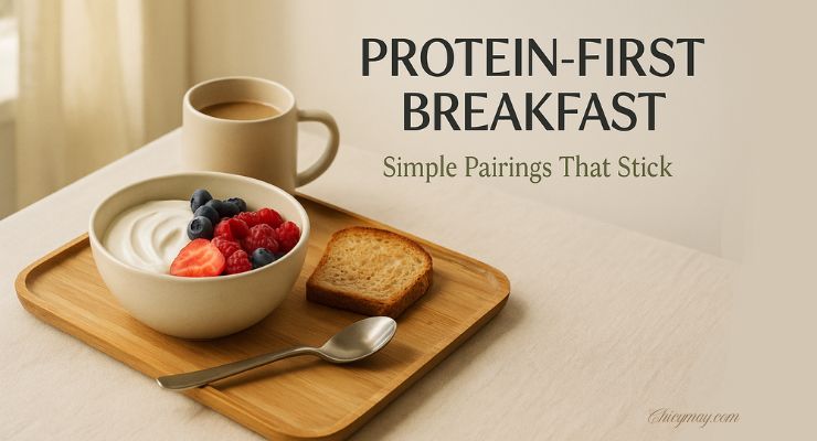 A protein-first breakfast is a tiny system: one anchor, one color, one comfort. Do it boringly well, and mornings stop being chaos. Energy rises, cravings soften, and you get your brain back before noon.